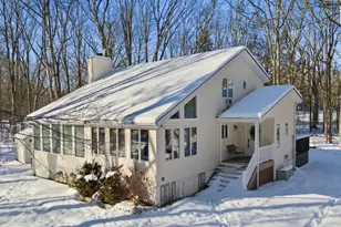 A charming home at the end of a quiet cul-de-sac, set back from the road for added privacy! Perfect as a permanent residence or a getaway retreat, this fully furnished home features an open-concept kitchen with a large island for family breakfasts, quartz countertops, beautiful hardwood floors, tiled bathrooms, and an enclosed sun room. Large windows throughout the home invite in abundant natural light , and an open-space living room with a fireplace and high cathedral ceiling creates a warm, inviting setting that's great for family gatherings.