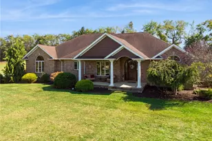 Welcome to 577 Boxard Luxor Rd, a beautiful brick ranch on 10 picturesque acres. This home combines quality craftsmanship w/ comfort, convenience, & space to entertain. Step inside through the large entryway & you'll see the vaulted ceilings, custom woodwork, & open, airy floor plan. The living room offers a striking fireplace & seamless flow into the dining room & kitchen, perfect for everyday living or hosting. On one side of the home, the primary suite awaits with a spa-like bathroom & walk-in closet. On the opposite side, you'll find 2 bedrooms along w/ a full bath & half bath. The lower level is finished, complete w/ radiant heat, large family room, theater entertainment system, 4th bedroom, & a full bath-ideal for guests or entertaining. Outside enjoy a covered front porch and a partially covered back patio w/ outdoor fireplace. The 3-car garage provides plenty of parking, while the 10-acre lot offers privacy and space to roam, all while being just minutes from local amenities.