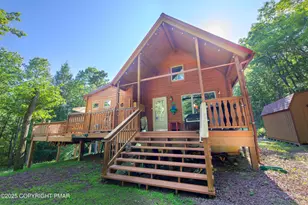 Available for Showings up until 9/5. Nestled at the end of a 900 ft gravel driveway, this charming log cabin sits on over 6 acres of wooded serenity in Jim Thorpe-offering the ultimate private escape. Surrounded by nature, enjoy morning coffee or evening gatherings on the oversized deck, ideal for entertaining and watching wildlife pass through. Inside, the cabin features rich hardwood floors throughout, a cozy propane stove, and a first-floor bedroom and full bath with double pedestal sinks and a standing shower. Two additional bedrooms are located upstairs, accessed by custom shiplap steps. Recent upgrades include a durable metal roof (2010) and three new mini split systems with a heat pump (2025) for efficient heating and cooling. The property also includes a storage shed, gravity sand filtration septic system, and parking for at least 6-7 vehicles. A small creek adds a touch of magic to this peaceful setting. Just 5 minutes to town, 25 minutes to ski resorts, and close to all the adventure and charm the Poconos has to offer.