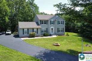 Enjoy your privacy at the end of the cul de sac in this 3 bedroom, 2.5 bath colonial. Nestled neatly on a partially wooded lot yet still plenty of sunshine throughout the day. Eat in kitchen with center island, stainless steel appliances, pantry with easy access to the deck. The comfortable family room has a brick wood burning fireplace. The living room has a propane stove for extra warmth. Separate dining room adds more 1st floor living space. The primary bedroom contains a large walk-in closet, private bath with a corner jetted tub and separate shower. Two more spacious bedrooms share the common bath. The basement walks out to the yard and is ready to finish. It contains laundry, acid neutralizer and another propane stove. The raised deck overlooks the yard and woods for outdoor entertaining. Both 100 gallon propane tanks are owned. Roof replaced in 2019, windows replaced 2017 & 2022. 22x22 two car garage and plenty of parking in the driveway. Great location close to shopping, entertainment, Blue Mountain and exercise trails. This one will go fast so come see it soon!