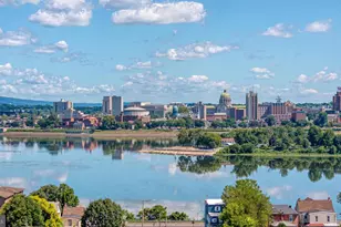 Experience unparalleled luxury living with breathtaking, million-dollar views of the Susquehanna River, iconic bridges, City Island, and the captivating Harrisburg skyline. This all-brick end-unit home combines timeless elegance with a carefree lifestyle in a private setting with no through traffic. These highly coveted one-floor condos rarely come available in this neighborhood, offering 3885 square feet of luxurious one-floor living in Central Pennsylvania's prestigious maintenance-free community. Enhanced with 2024 kitchen updates, the space features counters with a leathered finish granite and a massive island with quartz counters-perfect for entertaining and culinary enjoyment. The home also showcases the warmth and character of scraped Malbec walnut hardwood floors throughout. A stunning sunken living room features soaring 10-foot ceilings, and a dramatic stone fireplace flanked by built-in seating and shelving on each side. Triple crown molding throughout adds a refined, cohesive elegance to every room. The spacious family room is designed for entertaining, highlighted by three sets of French doors that open to the spectacular views and a custom-built wood bar with refrigerator, dishwasher, sink, and wine cabinet. The expansive primary suite features a triple window with stunning views, direct access to the patio, and a luxurious bathroom with a double vanity, makeup area, expansive walk-in block shower, and two closets, providing both elegance and functionality. Each bedroom includes its own private bathroom, offering comfort and convenience for family and guests. The finished lower level extends your living space with two versatile rooms, a full bath, and a huge storage room with shelving. Plantation shutters throughout add timeless style and privacy. The expansive brick patio extends your living outdoors, creating the perfect backdrop for gatherings or quiet moments while soaking in the panoramic scenery that will leave you in awe. From sunrise to sunset, the views are nothing short of spectacular. This one-of-a-kind property presents an exceptional opportunity for those who value beauty, privacy, and convenience-all in one remarkable home.