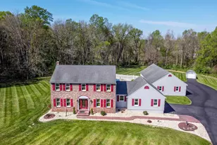 Nestled at the end of a peaceful cul-de-sac, this beautifully maintained 4-bedroom, 3-bathroom home offers the perfect blend of comfort, functionality, and outdoor enjoyment-all set on a flat, private 1.8-acre lot. Step inside to discover a warm and inviting main level featuring a modern eat-in kitchen, formal dining room, cozy family room with a propane gas brick fireplace, and a convenient first-floor full bath. You'll also love the dedicated laundry room on this level, offering added ease for everyday living. Upstairs, the spacious primary bedroom boasts a recently updated en-suite bathroom, complemented by an equally updated hall bath and three additional bedrooms. The finished basement (800 square foot) offers a carpeted recreation space, while the unfinished portion provides generous storage. Major mechanical upgrades include an updated septic system (2025), new HVAC system (2024), new hot water heater (2021), and updated plumbing throughout (2024-2025). Outside, relax and entertain in the screened-in porch or enjoy summer fun in the built-in pool. Car enthusiasts and hobbyists will appreciate the two-car attached garage and an incredible detached four-car garage-complete with heating and air conditioning, shelving, and a worktable. Included with the sale: two refrigerators, washer, dryer, pool table, all mounted TVs with brackets, pool equipment and chemicals, and all garage shelving/workbench setup, and a one-year home warranty. See list for all the included items. Buyers should verify the accuracy of the room sizes and overall square footage. Don't miss the opportunity to make this versatile and lovingly upgraded home your own. Schedule your private tour today!