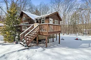 Experience life in the Pocono Mountains in this 3 bedroom, 2 bathroom home. Relax beside an elegant fireplace or in a cozy sunroom built right off of this living room. A modern kitchen offers plenty of counter and Prepare to be captivated by the enchanting exterior of this unique home that offers sun filled spaces that are paired perfectly with open beams and high ceilings. This home will require repairs to make the home achieve its greatest potential. This home encompasses great living space over three levels including the finished basement level. The main living space is located on the first floor which is perfectly centered around an elegant fireplace and the kitchen which offers plenty of counter and cabinet space. There are 2 bedrooms on this main level. The primary bedroom features a natural wooden beadboard ceiling to further accentuate this mountain home. A full bathroom separates the two bedrooms and includes tiled walls and a shower/tub combination. Upstairs find a single bedroom spanning the entire second floor, complete with a walk in closet. A finished basement with a full bathroom provides the opportunity for additional living space. Close to Route 209, hiking, and many natural recreational centers. Schedule your tour today! This home is in need of repairs and is being sold as is.