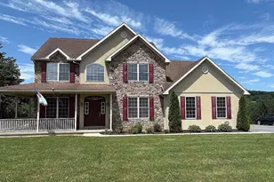 2 story single family home in a picturesque setting near Hawk Mountain. 4 bedroom, 2 bath. In-law suite in the walk out basement for a 5th bedroom and full bath and it's own custom opoxy-coated patio. Perfect for family members, teens, and visitors. Raised 19X40 Trex deck with spectacular views.