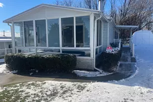 Welcome to this charming double-wide manufactured home, perfectly situated on a desirable corner lot in Shadowstone Village, a vibrant 55+ community with a variety of activities and a welcoming community center. This well-maintained home features 3 bedrooms and 2 full baths, including a spacious ensuite complete with a jetted tub. The second full bath offers a tub/shower combination, ideal for guests. Enjoy the outdoors from your 9 x 18 sunroom. Accessibility is key with a ramp leading to the side entrance. A 10 x 12 shed provides additional storage space. All appliances are included, even the washer and dryer, making your move-in effortless. The home is equipped with economical gas heat and central air, ensuring year-round comfort. A cozy natural gas fireplace in the family room adds a warm touch to the space. The kitchen, with its convenient breakfast bar, adjoins a bright dining area, creating a perfect spot for meals and gatherings. Located in a quiet cul-de-sac, the property also boasts plenty of off-street parking, making it an ideal choice for those seeking a peaceful, yet active lifestyle. Shadowstone Village has a pet-friendly policy, welcoming your furry friends to join you. Don't miss the opportunity to make this lovely home yours!