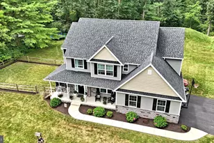 OPEN HOUSE CANCELLED 7/27. Deadline for best and final offers Saturday 7/26 by 9pm with decision Sunday morning. Thank you! Set back on a peaceful lot, this stunning 5 yr young Colonial on 2.28 acres offers the perfect blend of modern luxury and country charm. From the welcoming covered front porch to the gleaming Amish hardwood floors throughout the main level, you'll be impressed from the moment you step inside. The spacious dining room flows seamlessly into a gourmet kitchen featuring granite countertops, a matching island, stylish backsplash, and a bright eat-in area with sliders to a newer Trex deck with -perfect for enjoying serene views of your private backyard. The kitchen opens conveniently to a spacious family room complete with a stone hearth gas fireplace and tons of natural light. A powder room and laundry area complete the main level. Upstairs, you'll find a versatile loft space ideal for a home office or play area. The primary suite features two walk-in closets and a spa-like bath with soaking tub, tiled walk in shower, and Granite vanity. Three additional generously sized bedrooms share an upgraded hall bath also with Granite vanity ,dual sinks and tile flooring. The spacious basement with Bilco doors offers endless potential for future finishing. Don't miss your chance to own this move-in-ready gem!