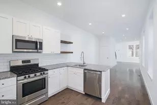 Introducing 1737 N. 28th Street! Enter from a quiet, tree-lined block to this remarkable renovation featuring a spacious living room, open dining area and kitchen, and half bath. Hardwood floors impress upon entry. Abundant windows bring in natural light. In the kitchen you'll find ample cabinet space with soft-close shaker cabinets, stainless steel appliances, and open shelving. Rear patio and yard perfect entertaining and pets. On the second floor you'll find three bedrooms, a full bath with oversized vanity, and a laundry room. On the third floor, a charming primary bedroom suite with pass-through closet to a private full bath. Full, unfinished basement perfect for storage. Rare to find this much space at this price. Schedule your private showing today!