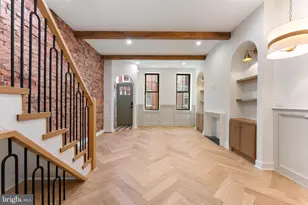 This exceptional 2 bedroom, 2.5 bath home is a full gut renovation with a fully custom floor plan designed to maximize space, flow, and functionality, featuring all new framing, electrical, plumbing, and a new 2-ton HVAC system. Striking custom-ordered black vinyl windows and ¾" white oak herringbone flooring throughout set the tone for timeless, high-end design, complemented by real wood beams, preserved exposed brick, and bespoke millwork at every turn. An arched entryway with wainscoting and Rojo Alicante marble, imported from Spain, makes a dramatic first impression. The main level showcases a black marble hearth with a decorative fireplace, a thoughtfully designed powder room featuring a wall-hung toilet, designer dimmable lighting, custom millwork, and a one-of-a-kind handmade marble sink imported from Turkey. The chef's kitchen features a custom hood vent, 36" Forno white range with brass hardware, and custom upper cabinetry with integrated lighting. Upstairs, the primary suite stuns with a walk-through custom closet and pocket door leading to a spa-like bath with checkerboard flooring, handmade Zellige 2x6 tile shower with marble bench, freestanding tub, wood vanity with Carrara marble top, and wall-mounted brass faucets. The 2nd bedroom also features an en-suite with handmade green Zellige tile surrounded by microcement walls, and a gorgeous cedar wood ceiling. Truly one of a kind and meticulously detailed, this home is steps from the best of Fishtown, including Kalaya, Suraya, Ama, Frankford Hall, Minor Details, and more.