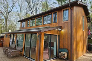 100' Lakefront Living on Lake Wallenpaupack at NO HOA Simons Point! Priced right based upon recent appraisal. Wake up to sparkling water views in this 4-bedroom, 3-bathroom (2 ensuite bedrooms) lakefront contemporary retreat boasting 1,300 square feet of thoughtfully designed living space. With your own private dock for up to 4 boats and jet skis just steps from the back door, enjoying boating, fishing, and lakeside lounging on 100' of lake frontage from your new elevated composite deck. The home was designed by the former owner and designer and features a unique layout. Inside you'll find a bright, airy layout enhanced by multiple skylights and lots of new, large windows and doors, that capture lots of light and great views. A cozy gas fireplace warms the main living area and the new hickory kitchen with all-new stylish appliances, make it perfect for hosting family and friends. The second-floor primary suite overlooking the lake offers lots of lake-view windows and an ensuite soaking tub. A co-joined Queen bedroom and Bunkbed room share an ensuite bath with tile shower. There's one Queen bedroom on the main floor and a full bath and laundry room to round out the convenience of lakefront living. Additional features include wood siding for rustic charm, a firepit for lakeside evenings, and a modern on-demand tankless water heater for efficiency. Owner had professional home inspection to rule out any problems and will be putting on a new roof in the coming weeks. Whether you're looking for a weekend getaway or a year-round residence, this property delivers the ultimate Lake Wallenpaupack lifestyle-relaxation, recreation, and unforgettable views. Owner is a PA licensed real estate professional. Property also includes the original garage and tool shed. Use your creative genius and turn this charming little building into a wonderful potting shed, tool shop or guest space.