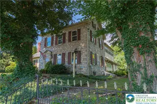Privately situated on over 3 acres in Parkland School District, this remarkable 1791 stone colonial with 3 car garage blends timeless character with modern comfort. Expertly restored in 2000 the home was honored with the Lehigh Valley Builder's Association whole house restoration award. A canopy of mature trees and wrought iron fencing frame the entrance. Offering 3266 square feet of meticulously finished living space the house features exceptional room sizes and 9-foot ceilings throughout. Heart pine floors, custom shaker cabinetry, beamed ceilings, custom moldings and mantels, original antique hardware, deep windowsills and 6 over 6 windows add to the warmth and character of the home. The main level provides backdoor access to a mudroom that leads to the welcoming kitchen with light-filled breakfast area. The dining room could host the largest gathering with guests able to spill into the family room with fireplace, spacious living room with hearth, cozy enclosed porch with its wall of windows, or out onto the expansive patio, perfect for entertaining. A powder room is tucked just inside the patio entrance. The split landing staircase leads to the primary bedroom, the spacious full bath, and two additional bedrooms, each with an office or enclosed porch. A small room with private full bath could be a guest room. With specimen plantings and lush gardens, the property marries old with new and nature with convenience. The possibilities are endless in this legacy property.