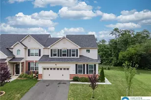 Nestled in the desirable community of The Fields at Jasper Ridge, this elegant 3-bed, 2.5-bath semi-detached home blends timeless design w/modern comforts. Its classic brick & vinyl facade, 2-car garage & paved driveway create a welcoming 1st impression. Inside, gleaming HW flrs set the tone for the home's warmth & sophistication. Glass French drs open to a quiet den-perfect for a home office or study-while the formal DR invites memorable gatherings before flowing effortlessly into the open-concept FR & kitchen. The FR, with its vaulted ceiling, recessed lts & cozy gas fireplace, is an inviting retreat. The chef's kitchen is equally inspiring, showcasing Quartz counters, stainless stl apps, subway tile backsplash, recessed lts & ctr island w/bfast seating. Behind dbl drs, the serene master ste offers wall-to-wall comfort, recessed lts & LG walk-in closet. Its beautifully updated en-ste bath evokes a spa-like feel w/dual Quartz-topped vanities, oversized walk-in shower w/glass drs & a private commode. 2 add'l bedrms provide space for family or guests & share a full bath w/a Quartz-topped vanity & tub/shower combo. The 2nd flr laundry rm w/utility sink & organizational shelving adds convenience. Outdoors, the lifestyle continues w/walkout Trex deck overlooking a paver stone patio, where you can unwind or entertain while taking in panoramic views. Close to major highway I-476 for easy commute, Emmaus Community Park, Brookside Country Club, shops, restaurants & so much more!