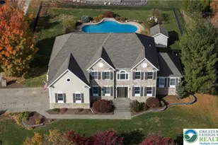 Exquisite luxury home on a picturesque corner lot in sought-after Center Valley! This 4-bedroom, 3.5-bath residence blends elegance and comfort with a dramatic 2-story foyer and family room, bright conservatory, sunroom, and private office. The gourmet kitchen impresses with GE Café appliances, Calacatta quartz counters, pot filler, large island, butler's pantry, and custom mudroom. The luxurious primary suite offers a spa-inspired bath with radiant heated tile floor, soaking tub, and zero-entry glass shower. Entertain in style in the finished basement with wet bar and theater area, or outdoors in the resort-like oasis featuring a heated saltwater pool, hot tub, pergola, Trex decks, and new motorized awning. Additional highlights include engineered hardwood throughout, motorized blinds, dual-zone HVAC, EV/RV chargers, Techo-Bloc paver driveway, and lighted stone pillars. A true showcase of luxury living inside and out! See for yourself how amazing this home is - explore the full Matterport tour! Pre listing inspection available,buy with confidence.