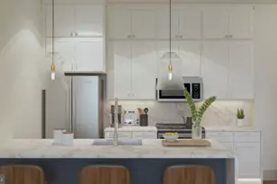 The Apartments at Wayne Station offer luxury apartment living in the heart of Wayne, featuring thoughtfully designed residences with high-end designer finishes throughout. Kitchens include custom cabinetry, stainless steel appliances, quartz countertops with full backsplash, waterfall islands, and gooseneck faucets. Designer lighting includes pendant, under-cabinet, toe-kick, and recessed fixtures, complemented by herringbone-pattern luxury vinyl plank flooring and in-unit laundry rooms with washer/dryer, cabinetry, sinks, and countertops. Spacious layouts feature ceiling fans in bedrooms, California Closets, and well-appointed bathrooms with ceramic tile flooring, quartz vanities, and walk-in tile showers with frameless glass doors. Amenities include controlled building access, basement garage parking, and a package room with cold storage. Ideally located steps from dining and boutiques along Lancaster Avenue and just a 5-minute walk to the Paoli/Thorndale Line at Wayne Station, offering a seamless blend of luxury, convenience, and Main Line living.