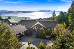 Discover the epitome of serenity at this stunning 5-acre estate. Breathtaking bay and territorial views amongst meticulously landscaped grounds, truly an entertainer's haven! Enjoy peace & quiet just minutes to town across single-level open concept living spaces, gourmet kitchen w/Thermador appliances, indoor-outdoor entertaining space w/wet bar, grand media room w/wine room, and expansive stone patios. Can't forget the heated indoor pool+steam room, gym and walk-in shower! Primary bed+ensuite w/jetted tub, 2 guest rooms + office/studio on one wing. Whole home generator, central heating/cooling. Nestled across the private road lies opportunity (ADU potential?) w/water+power available. Your very own oasis in the sky!