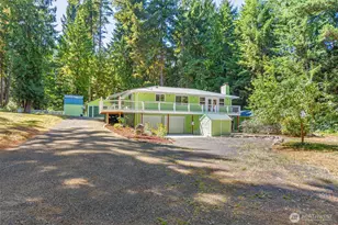 In the historic community of Olalla, this home is ideally located between Gig Harbor & the Southworth Ferry. Just minutes from the majestic Olalla Landing where the author of "Starvation Heights" offers up groceries and great food! Freshly painted stucco exterior, durable metal roof, and newer wrap-around Trex deck set the tone. Entries have retractable screen doors. Inside, enjoy an updated kitchen with new SS appliances. The primary suite boasts a jetted tub, and generous living areas. Living room fireplace w/wood insert for cozy winter nights. Lower level offers separate entry, studio with full bath, and heated tile floor-perfect for VRBO or generational living. Circular drive, 2-car garage, and 1-car detached garage on 1.14-acre lot.