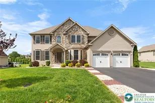 Come discover this gem in Scenic View Estates. Wonderfully located on a quiet street in Upper Nazareth Twp. Plenty of space for everyone in this 5 bedroom 4 full bathroom home. A grand 2 story entry flanked by Living/sitting room and dining room then opens up into the family room with cathedral ceilings, gas fireplace, plenty of sunshine through the many windows. Hardwood floors added throughout the 1st and 2nd floors. Gourmet kitchen with quartz counter tops, farmhouse sink, center island, gas cooking, pantry and plenty of cabinetry. The mudroom has 1st floor laundry and leads to the garage which contains a 2nd kitchenette (no range but has gas line). All remaining appliances included.The 1st bedroom is on the 1st floor adjacent to a full bath. Upstairs you will find the main bedroom suite with walk-in closets, well appointed bathroom with soaking tub, shower and double sinks. The additional bedrooms are well sized including one with its own full bath. Plenty of enjoyment to be had on the deck. Part enclosed and part exposed. Dual Zoned HVAC (gas heat), gas water heater and gas cooking make this an economical home. Nice flat yard, full basement is ready to be finished. Radon mitigation fan installed. Shopping, entertainment and major routes are all close by. Well sought after Nazareth School District.
