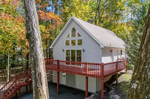 This stunning three-level chalet-style A-frame home offers the perfect blend of comfort, space, and mountain charm. Featuring 5 spacious bedrooms and 3 full bathrooms, it's ideal for family gatherings, weekend getaways, or year-round living. Step inside to a bright, open-concept living area with soaring ceilings and expansive windows that fill the home with natural light. The modern kitchen is designed for both everyday living and entertaining, while the inviting living room with a beautiful fireplace creates the perfect spot to relax after a day of adventure. The ground level includes a garage and a bonus area with existing cabinetry, offering great potential for an additional kitchen or flexible living space. Multiple levels ensure privacy and comfort for everyone. Outside, enjoy the tranquility of your private deck surrounded by nature-perfect for morning coffee, summer BBQs, or peaceful evenings under the stars. Residents of Beech Mountain Lakes enjoy access to exceptional amenities, including a crystal-clear lake for swimming, fishing, and kayaking, as well as hiking trails, playgrounds, picnic areas, sports courts, and a community clubhouse. Don't miss the opportunity to own this beautiful chalet that perfectly combines natural beauty, modern living, and resort-style amenities. Schedule your showing today and experience mountain living at its finest!