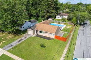 Welcome to this beautifully updated 3-bedroom, 1-bathroom ranch situated on a desirable corner lot. Step inside to discover gleaming ceramic tile floors that flow through the spacious living room. The eat-in kitchen is complete with laminate floors, tile backsplash, ample cabinetry and modern finishes. The open-concept family room invites you to unwind by the cozy woodburning fireplace-perfect for relaxing evenings at home. All three bedrooms are generously sized and filled with natural light, while the full bathroom has been tastefully updated. Step outside to your private backyard oasis, where a covered patio overlooks a sparkling inground pool-ideal for summer entertaining or peaceful lounging. Short walk to parks, shopping, and dining. Schedule your tour today!