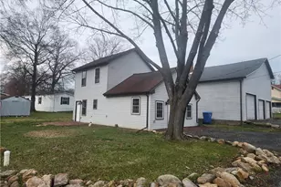 Charming detached two-story home with a separate two-story garage, offering a unique blend of residential living and investment potential. The home features a spacious living room, large dining area, and an eat-in kitchen. With 1.5 baths and two generously sized bedrooms, this residence has been thoughtfully updated and includes a range/stove, microwave, and refrigerator-all of which stay. Equipped with central air and a heat pump for year-round comfort. The detached garage is a standout feature, accommodating up to four vehicles with two single doors and one double door. The second floor includes five storage units, each approximately 14' x 8', providing excellent rental or personal storage opportunities. Live in the home while generating additional income by renting garage and storage spaces, or utilize the entire property for your personal needs. A fantastic opportunity for homeowners and investors alike!