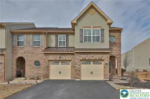 This Striking end unit townhome located in highly sought after Nazareth School District, is spotless and sophisticated, and delivers an impressive open concept designed for entertaining. A spacious foyer entry welcomes you, beautiful hardwood floors encompass most of the first floor, classy custom plantation blinds give that elevated look, and a sleek gas fireplace is an eye catching detail in the well sized family room. Modern tiled floor, granite counters and backsplash, 42" cabinets, oversized pantry, center island with breakfast bar, gas cooking, and stainless steel appliances make up the well appointed kitchen. The adjacent dining area has sliding doors that lead to a great back yard. Vaulted ceilings accent a primary bedroom oasis with its own luxurious en-suite which was just recently renovated and features tiled floors, dual vanity, soaking tub, step in shower, and large walk in closet. The roomy loft provides an excellent flexible space for many uses. The finished basement features a half bath, a second family room, another room for office or workout room and there is plenty of storage space. An elegant stamped concrete patio covers most of the back of the home and is perfect for relaxing and hosting BBQ's. Enjoy a convenient location with walking trails, park, and splash pad nearby, plus many shopping conveniences are within minutes. This well cared for home is move in ready. Multiple offers received. Highest and best by 10/21 Tuesday noon.