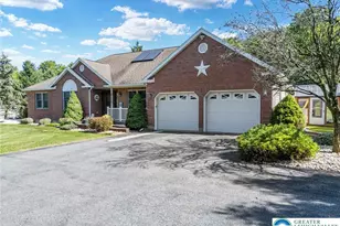Welcome to this beautifully maintained custom-built ranch home situated on 1.5 private acres. Offering a comfortable layout, the home features a spacious eat-in kitchen, convenient main-level laundry, and a warm living room highlighted by a vaulted ceiling, exposed beam, and propane fireplace. The primary suite includes a large bedroom and private bath, while two additional bedrooms and a second full bath provide ample space. A versatile office/den could easily serve as a fourth bedroom. Step outside to enjoy the expansive deck, patio, and hot tub with serene views, perfect for entertaining or relaxing. Additional features include a greenhouse, workshop, and full lower level ready to be finished for added living space. Recent updates include a new heating system and HVAC for peace of mind. Conveniently located near major highways, shopping, and medical facilities, this property combines quality craftsmanship, modern updates, and an ideal location.