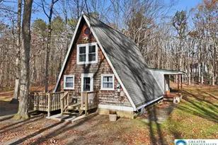 This cute well maintained unique A frame home offers 2 bedrooms, 1 bath nestled on a private 1.73 acre lot in the Pocono Mountains! Enjoy cooking in the modern kitchen with butcher block countertops, subway white tile backsplash and the large brick faced fireplace with a pellet insert to keep the home nice and warm. Enjoy relaxing in the family room with a view of all the natural beauty of each season. A nice sized bedroom, a modern full bath and laundry area complete the first level. The second level offers a master bedroom with vaulted ceilings, sitting area and closets. The oversized detached garage offers plenty of storage. Located near shopping, skiing, State Games land for all your adventures. Call today to schedule your private showing of this super cute home!
