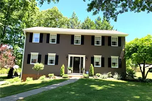 Step into this classic 4-bedroom Colonial, where timeless elegance meets modern comfort. This home features a spacious layout with generously sized rooms, perfect for entertaining or cozy family gatherings. The main floor includes a bright, inviting living room with a traditional fireplace, a second living room with patio doors to back deck, a formal dining room with custom moldings, and a well-appointed eat-in kitchen complete with granite countertops and ample cabinetry. Upstairs, find four spacious bedrooms, including a primary suite with an en-suite bath and generous closet space. Enjoy a finished basement space with tons of storage, laundry with half bath and an oversized integral garage. Outside, enjoy a beautifully landscaped yard with a uniquely tiered patio, ideal for outdoor dining and entertaining. Located in a serene neighborhood.