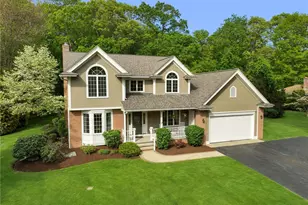 Welcome to Lion's Head luxury homes development, where elegance meets comfort. This stunning brick front colonial boasts a spacious entry and sits on over half an acre of private, wooded land, offering both tranquility and privacy. The heart of the home features a bright white eat-in kitchen adorned with Corian countertops, perfect for culinary enthusiasts. A convenient half bath is located on the main floor, a formal dining room along with a cozy three-season room and a dedicated study/office space. The front-to-back living/family room is enhanced by a charming wood-burning fireplace, creating a warm atmosphere for gatherings. A first-floor laundry adds to the practicality of this home. Upstairs, the primary suite is a true retreat, complete with an en-suite bathroom and a walk-in closet. Three additional bedrooms and a full bath provide ample space for family or guests, while vaulted ceilings add an airy feel throughout. The finished basement, accessible via bulkhead, offers plenty of storage and additional living space. This home is equipped with a whole-house generator, an irrigation system, and an electric pet fence for added convenience. Enjoy leisurely strolls on the sidewalks in this great neighborhood, with easy access to Providence, East Bay restaurants, and the scenic beauty of Newport. Don't miss the opportunity to call this extraordinary property your home!
