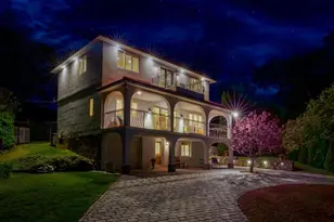 In 2005, the cottage on this water view property was reimagined and this stunning, sun-swept seaside villa was built and incorporated a new second floor. Designed to capture the beautiful, ever-changing water, sunrise and sunset views over the West Passage of Narragansett Bay, it was created to blend the indoors and outdoors.The living space was expanded through waterside terraces, a pergola-covered outdoor entertainment area with a built-in pizza oven and a magical outdoor dining area. A floor-to-ceiling neutral palette, open plan and natural materials, like Travertine floors, ensure easy, care-free living. A focal point, the kitchen is perfect for entertaining, with an 11-ft. center island, dual-fuel cooktop/stove and separate induction cooktop. A floating gas fireplace in the dining room provides warmth, while the living room opens to an expansive tiled terrace that overlooks the water and has imported wrought iron railings. The serene second floor primary suite is an oasis with a separate office area, laundry, custom closets, spa bath with a soaking tub and walk-in shower and, a waterside balcony. A spacious guest suite which enjoys a large, tiled bath occupies the first level and is conveniently located with an entrance off the picturesque cobblestone courtyard. The home offers a single-car garage, 60-year Decra LEED metal villa tile roof, two-year old 3-bedroom septic, beach access directly across the street and is a picture perfect year-round or seasonal home.