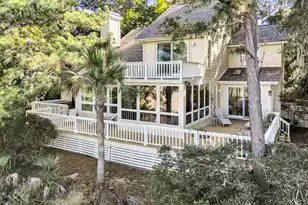 Secluded, private sanctuary with expansive marsh views.Primary suite is on the main floor with kitchen, dining room, living room and glass walled sunroom. Office loft and 2 ensuite guestrooms, both facing the view are on the 2nd floor. An intermediate level features a large suite above the garage. Extensive decks connect the home to it's spectacular natural setting. Stunning sunsets over the Kiawah River.New roof and encapsulated/dehumidified crawlspace October 2024.