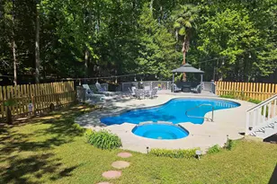 Set on a stunning 2.1- acre corner lot in award-winning Lexington School District one, this impressive home offers a rare blend of privacy, space and refined comfort Surrounded by expansive grounds and generous distance from neighboring homes, the property delivers a peaceful, secluded setting that feels like a private estate. Inside, the home offers four bedrooms with a flexible 5th bedroom option ideal for an in-law suite, private apartment or older child's retreat. That space includes its own mini-split, full bath with walk in shower and kitchenette that can be closed off from the main house, creating exceptional versatility.. A large pantry, built-ins, formal dining room , eat-in kitchen with french doors, spacious bedrooms and a primary suite with its own fireplace add to the home's charm and livability. Recent updates include 2 renovated bathrooms, a updated kitchen, new flooring, all new windows, new roof w 30-yr architectural shingles, and a fully wrapped aluminum exterior with new vinyl shutters.The great room provides an inviting gathering place with cozy fireplace. Designed for both relaxation and entertaining, the outside amenities are truly impressive. The in-ground gunite pool with Jacuzzi serves as the center piece of the backyard, complemented by a extended deck with walkway to the driveway, abundant parking,a circular driveway and room to add a large shop if desired. A gazebo and pool furniture, lights convey with sale and a transferable termite bond adds piece of mind. This is a beautiful maintained property that combines luxury, comfort and the kind of privacy that is becoming increasingly hard to find. Disclaimer: CMLS has not reviewed and, therefore, does not endorse vendors who may appear in listings.