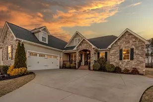 A custom home by Cobblestone Builders - Nestled on a tranquil cul-de-sac in the coveted Silver Meadows neighborhood, 213 Kittansett is a custom-built, architecturally refined home where modern craftsmanship meets timeless Southern living. The exterior, defined by stacked stone, classic hardboard siding, and a welcoming front porch, is crowned by an elegant arched doorway and double wood doors, setting a tone of warm sophistication from the first step inside. The main living space immediately captivates with coffered ceilings and a floor-to-ceiling stack stone fireplace, anchored by a floating mantle and flanked by custom built-in shelving. Dual sliders extend the interior to a generous back porch, complete with an outdoor fireplace, creating seamless indoor-outdoor entertaining. Sunlight pours through expansive windows, highlighting the curated details of hardwood floors, trim, and molding throughout. An open-concept chef's kitchen is designed for both culinary excellence and effortless entertaining. Two-tone cabinetry, a sizeable island with abundant seating, KitchenAid appliances, and a commercial grade gas cooktop are complemented by accent pendant lighting, a barrel ceiling with uplighting, and a herringbone backsplash that adds texture and visual interest. A formal dining room or flexible entry-adjacent space with a trey ceiling, alongside a bright breakfast area, accommodates gatherings of every scale. The primary suite offers a private retreat, overlooking a backyard framed by tall pine trees. Trey ceilings and intricate molding enhance an enviable spa-like ensuite featuring a walk-around tile shower, pebble floor, standing soaking tub, and an expansive dual-sink vanity with additional counter and storage space. Three additional bedrooms and two full baths, including dual vanities and separate shower areas, provide comfortable accommodations, while a bonus/exercise room above the garage adds versatile living space. Practicality blends seamlessly with style: a walk-in laundry room with built-in cabinets and sink is located off the garage, and the home's split-bedroom layout ensures privacy and flow. Outdoors, the huge backyard offers a flat, private canvas for recreation and reflection. Situated within the sought-after Wade Hampton High School district, this home offers convenient access to downtown Greenville (under 20 minutes), Paris Mountain State Park (8 minutes), and Lake Robinson (10 minutes), with Blue Ridge Mountain views completing the lifestyle tableau. As a luxury home in Greenville SC, this residence reflects the quiet elegance, thoughtful design, and exceptional quality that checks all of the boxes.