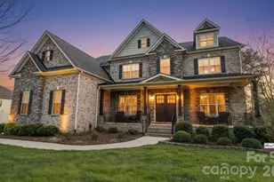 This one checks ALL the boxes! Plenty of space, heavily upgraded, a prime corner lot and an amenity-filled neighborhood assigned to Clover Schools. This all brick/stone 2-story with basement welcomes you with a rocking chair front porch, and double doors to the two-story foyer. It connects to the study/office with french doors, and the formal dining room with butler's pantry. The 2-story great room is dramatic with built-ins, a stone fireplace, and a wall of windows. It opens to the breakfast area, and the kitchen with white cabinetry, gas cooktop, double ovens, and a spacious island. From there, you'll find what could be a second pantry, which has been used as another home office. The drop zone leads to the 3-car garage with epoxy floors. There's also a main floor guest suite. Upstairs, there are 4 more bedrooms, and 3 full baths including the expansive primary suite with sitting area with fireplace. The bath has dual vanities, tub and separate shower, and not one, but two walk-in closets (one is the size of a bedroom). The full daylight basement offers even more opportunities, with flex areas for gaming/gym, a bar with sink/fridge and microwave, and a home theatre. Plantation shutters throughout the house, even in the basement, and incredible storage areas with custom shelving (store your holiday decorations with ease). Relax on the covered back porch with composite decking, or on the lower paver patios, including one with a fire pit and fountain. Community offers a clubhouse, pool and splash pad for the kids. So much house for the money! Welcome home!