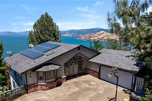 Spectacular panoramic views of Clear Lake on almost a half-acre lot in Riviera Heights with OWNED SOLAR PANELS! This home features over 2,700 square feet of interior space, vaulted ceilings, an abundance of natural light, spacious decks, and ample storage. Situated between two vacant lots this property offers privacy, and magnificent lake views from almost every room. The living room provides floor to ceiling windows, a vaulted ceiling, and a freestanding pellet stove. Close by on the main level you will find the primary bedroom, with walk-in-closet, and en-suite bath. The kitchen features a dedicated dining space, eat-in breakfast counter, pantry, and half-bath. This home has an attached 2 car-garage, with direct access on the main level of the home, plus a flat and level driveway providing 3 to 4 additional parking spaces. As you make your way downstairs you are greeted by an expansive great room with mini-bar, two bedrooms, a full bath, and an oversized deck with more panoramic lake views. Extra storage is located under the lower floor with access from the side of the house. This home is located in the firewise community of Riviera Heights, which is considered to be one of the most favored communities around the lake. This HOA community offers its residents access to a marina & dock, picnic area, pool, and clubhouse available for day use. Make this home your next investment, secondary lake house, or permanent residence! Home inspection on file.