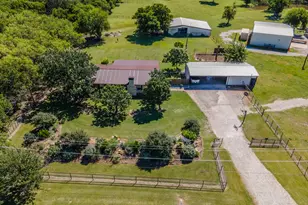 Attractive family farm property with home and multiple amenities, centrally located between Alvarado, Mansfield, Midlothian, and Venus with access to I-35, Hwy 287, and US Hwy 67. The location, amenities, and layout of the property, including two separate entrances off CR 616, also lends itself to a small business operation. The 1,776 sf 3BR 2B house has new roof and gutters and new central heat-air and ductwork completed in 2024. The home has two living areas, a formal living room with wood-burning fireplace and a large family room at the rear. The primary bedroom includes his and hers closets and an attached bath. The kitchen has stainless appliances, lots of cabinet space, and an attached dining area. The house has updated lighting, mostly LED, and Low-E windows. Flooring includes both carpet and laminate throughout. A landscaped berm between the house and the road creates privacy. Adjacent to the house is a 3-car detached parking structure that includes storage space, currently used as a recreation area. A fun outdoor living space has been created behind the building, with landscaping, space for grilling, a garden area, and outdoor seating underneath the building's awning. Additional improvements include a 38x40 metal horse barn with 3 stalls, a 40x42 metal shop building with an 18x42 covered equipment shed with 30amp breaker, and a separate 20x20 covered equipment or RV parking space with a 50amp breaker. The terrain is level and primarily open, with scattered trees around the improvements as well as trees along a seasonal creek and the boundary lines. The property is fenced and cross-fenced for livestock, with some pipe fencing, and there are three runs adjacent to the barn. Surface water includes one pond. Approximately 3.6 acres at the front of the property fall in the floodplain. The location offers 498 ft of road frontage along CR 616. One JSUD water meter and three electric meters onsite. Alvarado ISD. Ag exempt.
