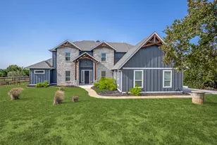 Welcome to this 2 acre lot in Grassland Estates, 6 bedroom estate in Decatur ISD. Light, airy, and impeccably crafted, this 2019 built Craftsman style home blends farmhouse warmth with modern sophistication. close to the city, yet serenely private with fresh air and open skies. This home showcases a custom pool built in 2023 with high end finishing for that resort style feel! From the foyer, abundant natural light highlights a cozy, versatile space with built in shelving and a stone fireplace, ideal as a library or dining room. The main level includes a two bedrooms with a walk in closet and a private primary suite with a luxurious bath and walk out to the pool. The expansive family room flows into the kitchen, which features a large island, farmhouse sink, floating shelves, a generous pantry, and double ovens. A convenient pet shower in the utility room adds practicality. The first floor is equipped with a full bathroom with a door to the back patio and pool. Upstairs there are three additional bedrooms with walk in closets and a full bath. This home is equipped with a large media room perfect for relaxing or entertaining guests. There is roughly a 300 sq ft surprise room (not included in the stated square footage) awaits customization that's ready for a gym, playroom, studio, or extra living space. Outdoor living is abundant with a fenced backyard, oversized covered porch, and a firepit, all in an energy-efficient design with numerous updates throughout. Come check out this country estate with amazing views and great neighborhood!