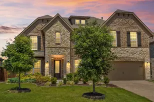 OPEN HOUSE: March 22 and 23, 1:00pm- 3:00pm! Be prepared to fall in love with your forever home! This stunning two-story, four bedroom and 3.5 bathroom home in award winning Canyon Falls Neighborhood within Argyle ISD and walking distance to the new elementary school and Argyle High School truly soars above the rest! Step into the elegant entryway with tall ceilings, a grand spiral staircase surrounded by wrought iron railing and beautiful wood flooring throughout. A large dedicated office at the front of the home makes working from home easy and efficient. A guest suite with ensuite bathroom provides the perfect space for multi-generational living and privacy. The spacious dining room is perfect for entertaining and flows seamlessly into the open concept living, kitchen, and breakfast area, creating the perfect space for gathering. The kitchen is equipped with upgraded SS appliances, gas cooktop, double ovens, walk in pantry, large California island and on trend herringbone backsplash which blends perfectly with the bright white cabinets. The surprisingly large primary suite with seating space and large windows is the perfect getaway after a long day. The spa-like bathroom features a garden tub and separate shower with separate vanities and large walk-in closet. Upstairs, you will love all the space to spread out and play, including the large game room, a media room with custom barn door, two generous secondary bedrooms and a full bathroom! Saving the best for last...head outside to your own private oasis with built-in kitchen, salt water heated pool and spa and STILL room for your four legged friends to run on the low maintenance turf dog run! Don't miss this opportunity to live in your dream home in an amazing neighborhood with community and fitness center, walking trails, a dog park and just minutes away from dining, shopping and DFW Airport. Schedule your showing today, this home will not last long!