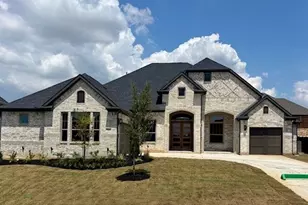 MLS# 20989943 - Built by Chesmar Homes - Ready Now! ~ This stunning new construction single-family residence in Canyon Falls 90S offers 4 spacious primary bedrooms and 4.5 bathrooms, providing ample space for family and guests. With a generous 3,093 square feet, the open floorplan features an inviting living area with two fireplaces, perfect for cozy gatherings. The modern eat-in kitchen boasts a large island and pantry, ideal for culinary enthusiasts. Enjoy the convenience of a dedicated dining area and an outdoor living center on the covered patio, perfect for entertaining. The landscaped lot includes a large backyard with a sprinkler system. Additional highlights include vaulted ceilings, decorative lighting, and multiple walk-in closets. Completed in September 2025, this home is part of the highly sought-after Argyle ISD, with schools nearby. With a three-car garage and energy-efficient zoned heating and cooling systems, this home combines elegance and practicality in a vibrant community.