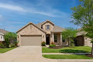 This stunning 4-bedroom, 3-bath Highland home in highly sought-after ArrrowBrooke offers the perfect blend of style, comfort, and functionality. From the moment you enter, you're welcomed by elevated ceilings, abundant natural light, and rich hardwood floors that flow throughout the main living areas. The open-concept design is ideal for modern living, featuring a spacious living room with a beautiful stone fireplace that seamlessly connects to the kitchen and dining area. The chef's kitchen is a true centerpiece with a massive island, upgraded cabinetry, quartz countertops, and stylish backsplash, perfect for entertaining or everyday living. The private primary suite offers a relaxing retreat with tall ceilings, dual vanities, a soaking tub, separate shower, and a large walk-in closet. Three additional bedrooms with walk-in closets provide flexibility for guests, family, or a home office. Enjoy outdoor living with both front and back covered patios, ideal for morning coffee or evening relaxation. Additional features include a tankless water heater and electric vehicle charging station. Located in the award-winning ArrowBrooke community, residents enjoy resort-style amenities including resort-style pools with a lap lane and bubblers, a pergola near grills, and a playground, fitness center, parks, trails, built-in ping-pong table, a cornhole set, and sitting tables and so much more. Zoned to Denton ISD with Sandbrock Ranch Elementary school Ideally situated near shopping, dining, and major highways, this home offers the perfect combination of peaceful suburban living and easy access to everything you need. The new Universal Studios, HEB, Children's hospital, Baylor Hospital and the PGA are all within 15 minutes. Listed nearly one hundred thousand less than new builds. Schedule your showing today. This one won't last!