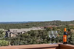 Updated condo with amazing Hill Country reserve views from 3 levels! New wooden flooring throughout, no carpets. 4 bedrooms, 3.5 bathrooms. Master Bedroom located on the main level. Lower level is ideal for an in-law or teen with a huge living/bedroom area and private bathroom. Plenty of storage space. Refrigerator is included. Gated community features resort lifestyle with junior Olympic pool, kiddie pool, fitness room, sauna, tennis, basketball, tot lot, and more. Walk to Lake Travis High School, gas station and restaurants. LANDLORD PAYS WATER, SEWAGE, TRASH AND LANDSCAPING (approx. $250 savings x mo.)