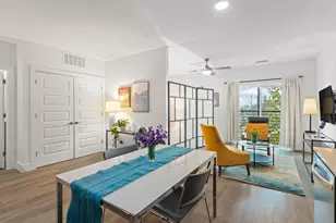 Sophisticated urban condo for someone looking to live a big life in a small footprint. Or perhaps a UT alum looking for a low-maintenance Austin weekend getaway walking distance to the stadium or the Moody Center? Top floor, open-space flat with stunning DT view. You won't be starring into a neighbor's window, and no noise above. A wall divides the entry and kitchen from the sleeping area. A movable accordion wall allows extra privacy between the sleeping area and the living room. Full-size W/D, quartz counters, tons of kitchen cabinet space and a large, modern bathroom. This unit is mere steps away from the fabulous rooftop patio. Dozens of well-loved restaurants and coffee spots steps away from the condo. UT is walkable, as is the baseball and football stadiums and the ever-popular Moody Theatre.