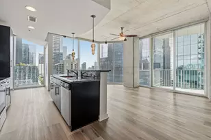 Beautiful southeast corner condo at 360 Condominiums, offering breathtaking panoramic views of Downtown Austin and Lady Bird Lake. This light-filled residence features new luxury vinyl plank flooring, an updated kitchen with stainless steel appliances, and an enclosed bedroom with French doors. Floor-to-ceiling windows flood the space with natural light. One reserved parking space included. Residents enjoy premier amenities, including a 24-hour concierge, owner's lounge, resort-style pool deck with grilling stations, state-of-the-art fitness center, media room, and dog park.Unbeatable location just steps from the best of downtown living-walk to Lady Bird Lake, Seaholm District, Trader Joe's, Whole Foods, the 2nd Street District, and countless dining, shopping, and entertainment options.