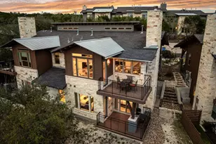 With stunning views of downtown Austin, this lock-and-leave retreat offers the best of both worlds: serene canyon and city views with effortless access to the Austin lifestyle in the gated community of Hillside. Designed for low-maintenance living, the home blends warm textures, thoughtful details, and open, light-filled spaces to create a true haven. The living room is expansive, with vaulted ceilings and walls of windows framing the greenbelt and downtown views. A dramatic tiled wall flanks the gas fireplace, complemented by built-in cabinetry and a sleek bar for entertaining. Every angle invites you to pause and take in the view. Engineered wood floors lead into an inviting kitchen with espresso cabinets and granite countertops. A suite of premium Dacor appliances, stainless vent hood, and patterned backsplash set the stage for cooking, while three pendant lights cast a welcoming glow. The dining area overlooks rolling hills, with a private balcony perfect for morning coffee or evening sunsets. The primary suite is a peaceful retreat with tall ceilings and its own balcony overlooking the landscaped surroundings. The spa-inspired bath features a glass-enclosed shower with soaking tub, granite counters, double sinks, and a large walk-in closet. The secondary bedroom boasts high ceilings, plush carpet, and its own balcony to enjoy the sounds of nature. A desk nook with granite countertop offers a quiet workspace, while additional flex spaces allow for study, storage, or extra sleeping. A large two-car garage completes the property. Outside, the community pool sits just two doors down for easy access. Within minutes, Austin's most popular hiking trails and lakefront dining at Ski Shores offer endless opportunities for exploration. Whether heading out for a hike or taking in the skyline from your balcony, life here moves at your pace-peaceful, effortless, and connected.