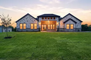 A peaceful 1-acre setting in Boyd, located in Wise County and tucked within a small, quiet neighborhood with no HOA, just outside of Fort Worth. This new 4-bedroom, 3-bath home backs to open green space with tree-lined views and no rear neighbors, offering added privacy and a true country feel. A large front porch with space for a swing or rocking chairs, and double iron-and-glass front doors, creates a warm and inviting first impression. Inside, the home features a well-designed split-bedroom layout, with the primary suite set apart for privacy, along with high ceilings and abundant natural light throughout. The open-concept living, kitchen, and dining areas include both a formal dining space and a breakfast area, providing flexible everyday living. The kitchen is a standout, featuring floor-to-ceiling cabinetry, a quartz waterfall island, pot filler, and a 6-burner gas cooktop, all opening to the main living areas. Sliding glass doors lead to a large covered rear patio and capture beautiful sunset views. The spacious primary suite includes dual sinks, a soaking tub, a large walk-in shower, and an oversized walk-in closet. Secondary bedrooms are well-sized and offer flexibility for guests, office space, or everyday living. Set on a full acre, there is room to add a shop, pool, or expand outdoor living. A large driveway and 2-car garage provide ample parking. A great opportunity to own new construction with land, no HOA, and a peaceful setting just outside of Fort Worth.