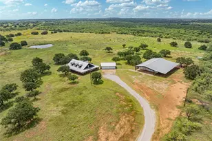 Welcome home to a picturesque, private estate located just outside of the city limits of Breckenridge in Stephens County! Experience the perfect blend of privacy and convenience with a stunning 4 bed, 2 bath custom built home nestled among gently rolling hills and mature post oak trees. Complete wrap around porches beckon you and guests to take in the panoramic views, local wildlife, and country landscapes. Inside, you'll find a wide open concept living-kitchen-dining room with soaring 2 story ceilings and a wall of windows to the east, perfect for entertaining and family gatherings. A spacious primary suite offers porch access, dual bath vanities and his and her closets, with beautiful custom built-in cabinetry. The guest bedrooms are well appointed with large walk-in closets split by an oversized Jack and Jill bath with more custom storage. Upstairs features over 600sqft of space accented with dormers and a convenient half bath, making it an ideal bonus or flex space, game room, media room, etc. Outside, a 3-car detached garage offers protected parking, while the 5,000sqft shop with electricity and oversized doors, boasts the perfect solution for storing recreational vehicles, or running your personal business. Excellently fenced and crossed fenced, the property is set up to run livestock, an equine operation, or keep hobby animals, with improved grasses and working pens. Water is a precious resource and is NOT in short supply here, with WCTMWD raw water, SRSUD rural water, and a brimming full 0.3 acre stock pond. The south border backs up to much larger acreage, giving the property an even more spacious feel. Again, location is key here, as it rests only 2 miles from Hubbard Creek Lake, known for its bass fishing and recreation. This property has so much to offer new owners, it's a must see for yourself. Call today to schedule a showing and make this one your forever home!