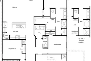 Come check out the Monroe floorplan in Burnet, Texas at the Creekfall community. This incredible single-story 1,951 approximate sq. ft., 2-3 car garage option is perfect for you. The four-bedroom and 2.5-bathroom layout, comfortably accommodates friends, family, and guest. When you enter the home, you'll be greeted with two bedrooms and a secondary bathroom and another secondary bedroom next to the car garage. Continuing down the hallway, find yourself in the open concept living area that blends the kitchen, great room, and dining area. The kitchen features flat panel birch cabinets and granite countertops, with decorative tile backsplash. It is set off from the lining areas by a kitchen island with a built-in sink. From the dining room are you have easy access to the covered patio. Walking through the great room, you'll find the primary bedroom with an attached bathroom. The bathroom has a double vanity and a walk-in shower that can be opted for a tub and shower, and a large walk-in closet for all your belongings. Like with all our homes, you'll never be too far from home with our smart home technology thoughtfully designed into every detail. Contact us today to find your home in Creekfall.