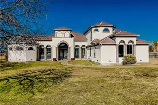 Introducing this luxurious Mediterranean estate. This premier property boasts the perfect blend of elegance, comfort. and sophistication, offering a dream lifestyle. Situated on a 1.02 acre lot providing space and privacy. Step into this captivating home through a grand entrance beginning with the custom double iron doors with windows that welcomes you with an abundance of natural light. The interior features a formal living room, a refined dining room, and a cozy space with exquisite custom accents. The expansive gourmet kitchen provides ample storage space for culinary enthusiasts. Master bedroom suite with a beautiful white fireplace and custom ensuite morning bar, inviting sitting area and an en-suite bath with dual vanities, A soaking jetted tub perfect for a relaxing bath after a long day. Double wrap around separate shower and walk in closet. Sophisticated custom built-ins adds to the character of this beauty. Embrace the allure of this mediterranean oasis. This extraordinary residence embodies luxury, comfort, and style in every detail. *All information to be verified by buyer. Equipped with an extremely convenient underground propane tank, BRAND NEW carpets and kitchen appliances. * The price adjustment reflects the heavily treed backyard, which may limit usability for some buyers. *This property includes a Transferable Foundation warranty.