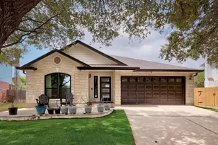 Absolutely gorgeous updated home in highly coveted Quest Village w no houses behind! This lovely home is nestled under a shady canopy of towering Live Oaks w a stone capped front sitting porch just a 2 min walk to the Library, Police station& Cedar Park Holiday lighting of the tree festival! This home has been extremely well maintained& has all the upgrades you can imagine! You are greeted w a welcoming modern wood& glass front door& then step into a fantastic open floorplan w gorgeous wood look tile floors throughout (NO CARPET!), boxed out window seats, custom iron lighting& 2" wood blinds w iron rods& draperies. There are lots of recently replaced double paned low E glass big picture windows that bring in tons of natural light making this a bright& happy home! The gourmet kitchen is amazing& boasts granite counters, deep apron farm sink w industrial gooseneck faucet, travertine backsplash w mosaic inlay, farmhouse pendant light above breakfast bar, SS gas appliances& WIP! The oversized primary has custom double barn doors leading to a truly spa like bath that boasts a huge WIS w ceiling rainshower+ 2nd wand shower head, tasteful deco tile, seamless shower glass, custom double quartz apron vanities& huge WIC! The 2nd bath is finished out just as nicely w beveled subway, matte black farmhouse fixtures& barn door storage! Other features include full gutters, glass french doors to the office (could be 4th bdrm)& recent roof! The covered patio overlooks a big culdesac lot that is perfect for entertaining friends& family! SOLAR panels convey saving thousands per year on utility bills! The location is perfect& just 1 block to the park& 5 min to the new DT Cedar Park redevelopment area! Just 15 min to the new Apple Campus, Dell& the Domain! Close to Target, Movies, Costco, Chuys, Lupe Tortilla, Jack Allens, Torchy's& tons of yummy restaurants! Feeds into the highly acclaimed Leander ISD for amazing schools!