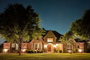 Stunning custom-built home in DC Ranch, one of Celina's most sought-after communities, known for its one-acre homesites, peaceful setting, and strong neighborhood feel, all just minutes from Celina High School and Bobcat Stadium. Situated on a beautifully landscaped 1+ acre lot, this meticulously maintained 4-bedroom, 3.5-bath home offers exceptional quality, thoughtful upgrades, and seamless indoor-outdoor living. The open-concept floor plan showcases spacious living and dining areas, tall ceilings, 8-foot doors, crown molding, and custom finishes throughout. The chef's kitchen is equipped with granite countertops, a Bosch induction cooktop (2023), dishwasher (2023), and garbage disposal (2026), all flowing effortlessly into the main living space. Recent mechanical upgrades include 2 HVAC systems replaced within the past 3 years, professionally cleaned air ducts, new ductwork in the rear of the home, and UV antibacterial air purification systems for enhanced air quality. The efficient septic system supports irrigation reuse. The primary suite has been beautifully updated with new tile flooring, a fully remodeled custom closet (2025), and updated lighting. Additional highlights include built-in living room cabinetry, a spacious laundry room with granite counters, utility sink, and room for freezer, plus abundant storage throughout. Designed for year-round enjoyment, the backyard features a heated pool with cabanas, a large covered patio with fireplace, automatic awnings, and a custom privacy screen for enhanced comfort. Three Big Fans provide added airflow on the patio and in the garage. The fully fenced property includes mature trees, new sod, additional fenced garden or pet area, and a 3-car garage with access to a massive walk-in attic. This home combines comfort, efficiency, and elegant design in a prime Celina location.