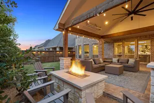 This isn't just a home, it's the backdrop to life's best moments. Hand-scraped wood floors welcome you in, while a sweeping spiral staircase hints at the thoughtful design throughout. Mornings begin at the built-in coffee bar, the aroma of fresh brew filling a chef's kitchen with double ovens and designer finishes, while the open living area becomes the natural gathering place where conversations linger, laughter carries, and memories are made. On the main floor, a private primary suite provides a serene retreat, while a guest bedroom ensures visitors feel completely at home, and a custom study adds a quiet, inspiring space for work or creativity. Upstairs, the energy shifts to fun and relaxation, with a game room featuring a wet bar, a fully equipped media room with projector for immersive movie nights, and two additional bedrooms offering cozy retreats for family or friends. Step outside to a backyard built for connection, with a built-in smoker, flat top grill, fire pit, patio heaters, and a large covered lounge perfect for year-round gatherings, celebrations, or quiet evenings under the stars. Beyond the backyard, the lifestyle of the community unfolds: over 200 events annually, resort pools, walking and biking trails, sports courts, fitness, stocked fishing ponds, on-site dining, and the convenience of a true golf cart community where kids bike safely to the neighborhood school and neighbors quickly become friends. With a new roof, gutters, and freshly stained fence already complete, all the hard work is done. This home is ready for the life you've been waiting for!